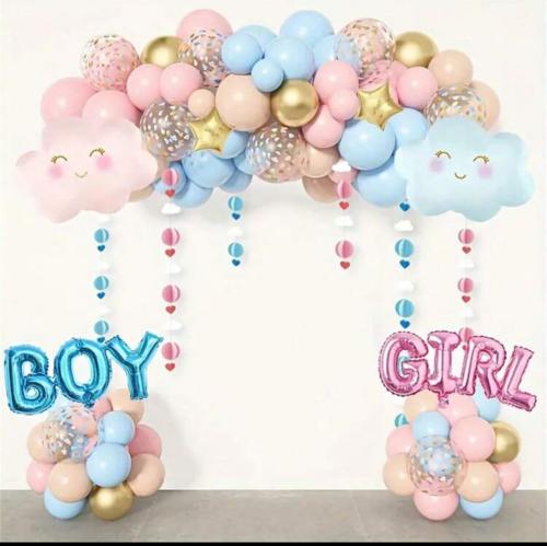 يوجد منها الوردي للبنت والازرق للولد تستخدم في حفلات كشف الجنين من أجل الاعلان لجنس الجنين .