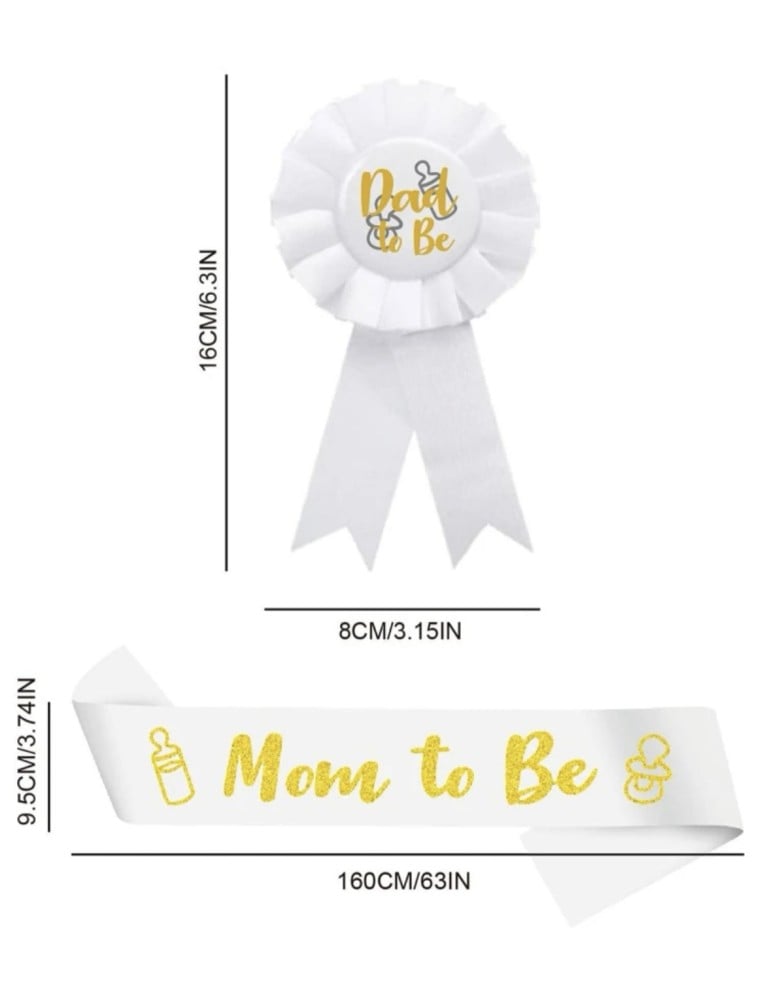 وشاح وبروش ابيض وذهبي للأم في حفل كشف جنس الحنين