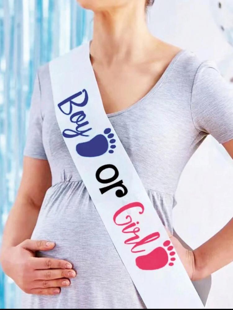 أفضل وشاح باللون الأبيض والكتابة الأسود ولون أقدام الطفل الوردي والازرق تلبسه الام فوق فستانها لتتميز في الحفلة وتبقى ذكرى لللتصوير .